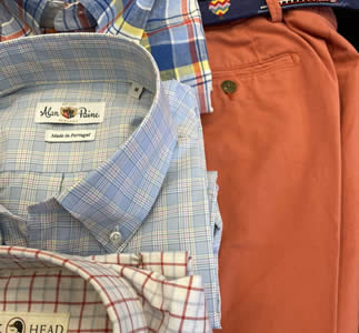 A: Peter Millar is a major resource for us. Additionally we carry Scott Barber, Alan Paine, Duck Head and many more.