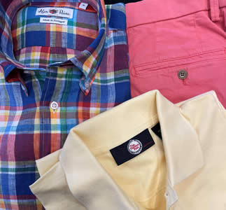 A: Peter Millar is a major resource for us. Additionally we carry Scott Barber, Alan Paine, Duck Head and many more.
